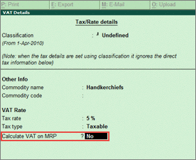 o Set the option Calculate VAT on MRP? to No , as shown below: