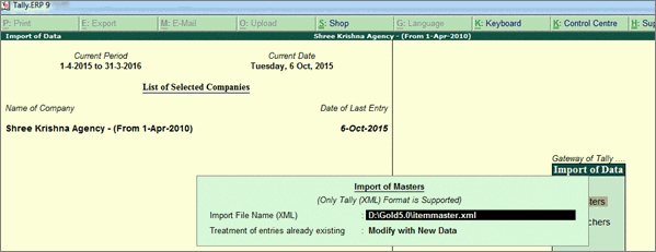 1. Go to Gateway of Tally > Import of Data > Masters .