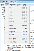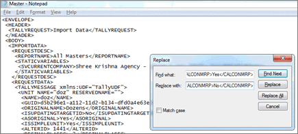 4. Enter - <CALCONMRP>No</CALCONMRP> in the Replace with field.