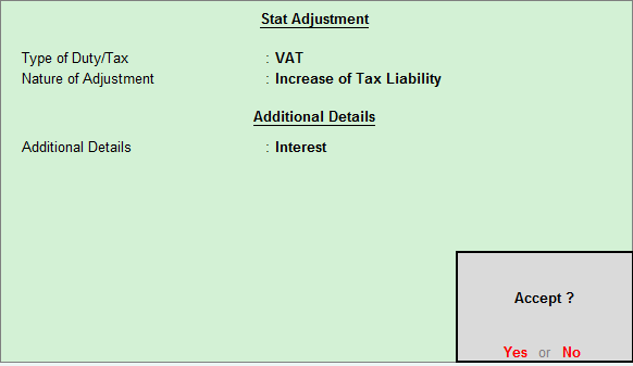 Select the type ofĀ duty/tax and the Nature of adjustment as shown below: