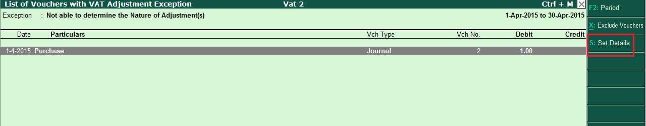 To exclude any voucher from VAT computation, select the voucher using Spacebar and click X: Exclude vouchers.