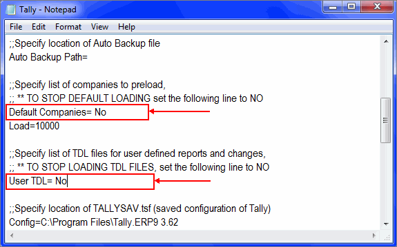 : In case you are able to start Tally.ERP 9 after setting the default companies to No, it is suggested to take a backup of the data and re-write the default companies.