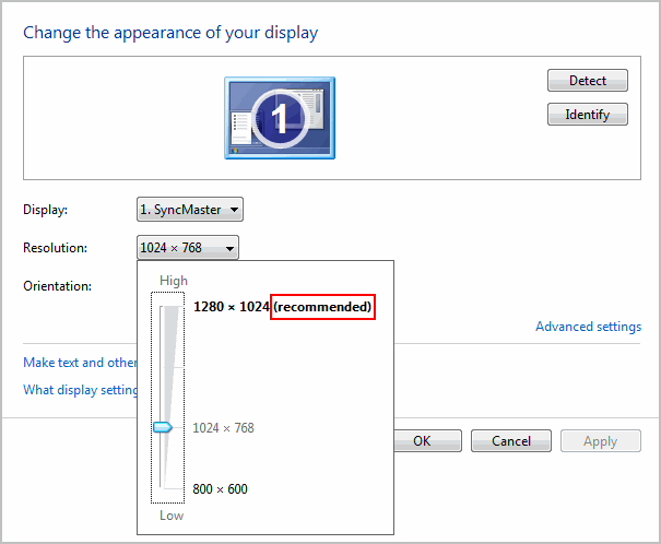 Start > Control Panel > All Control Panel Items > Display > Screen Resolution