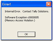 This topic lists the messages that appear in Tally.ERP 9 when there is memory access violation due to different reasons, and the steps to resolve the issue.
