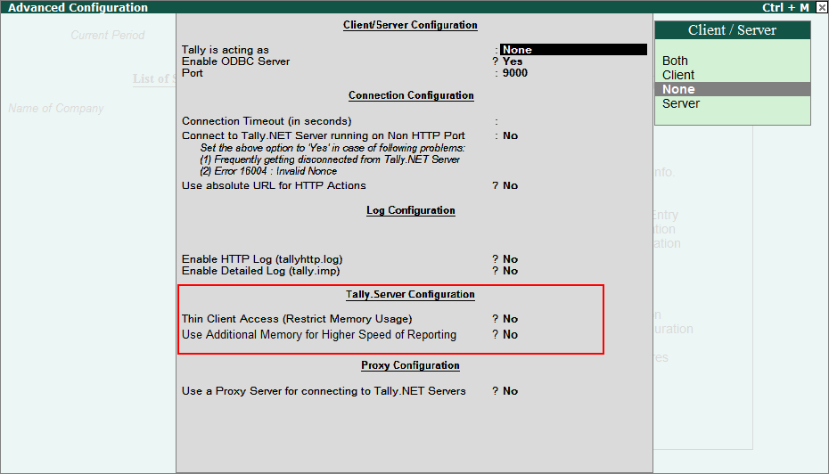 This is required if the volume of data is very high and there is un-utilised memory on the individual Tally.ERP 9 client machine(s). This will indicate to the Tally.ERP 9 client(s) to consume more local memory (instead of memory on the server) to cache the data, hence providing higher performance.