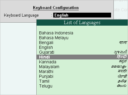 The Operating System Keyboard is used by those who know to read and write in the language of their choice. Entering data in Tally.ERP 9 using the Operating System Keyboard is different from using the phonetic keyboard as the keyboard layout differs.
