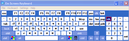 5. The On-Screen Keyboard will appear in Hindi as shown, as you place the cursor on it.