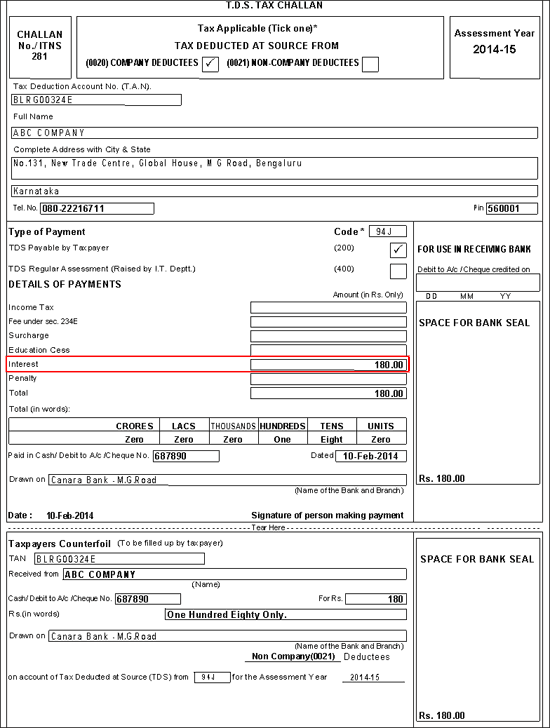 You can see that the Interest Payment, thus made is captured in the ITNS 281 challan