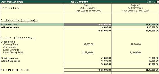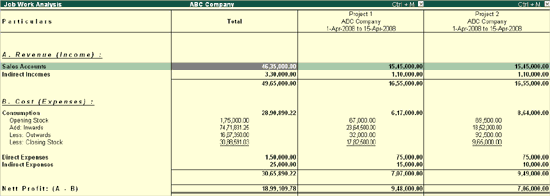 Note: You can drill down to the voucher level to view the break up of the job/project.