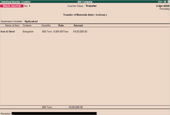 7.    Enter Narration, if required.
