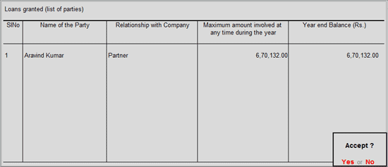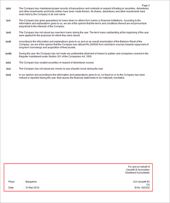 To print the report along with the clauses and Signature details of the auditor press Backspace.