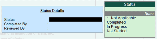 Note: F9: Status option is also available on drilling down to the checklist screen