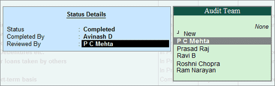 Select Reviewed By from the names of the Audit Team member who reviewed the auditing.
