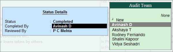 Select Completed By from the names of the Audit Team member who performed the auditing.