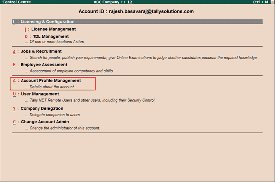 3.    Click on Account Profile Management or press Alt+Y.