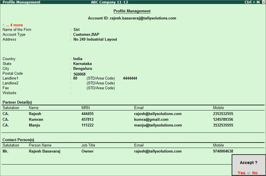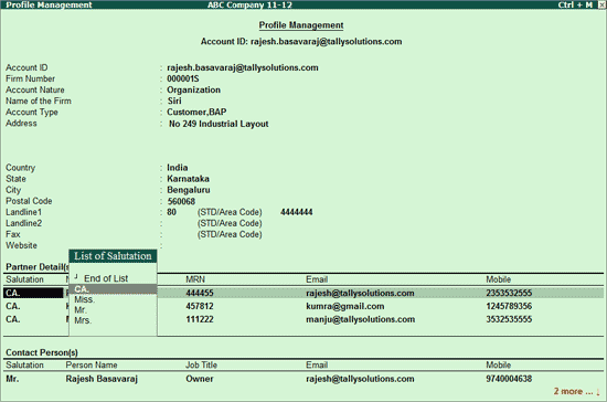 Chartered Accountants who are registered as BAP users of Tally.ERP 9 can now create and maintain their profile as well as the firm's profile in the Control Centre.