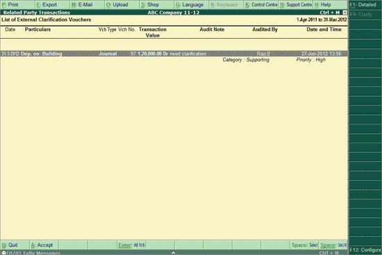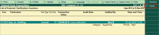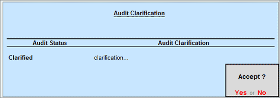 Click F9: Clarify button or press F9 provide the necessary Clarification to the Auditor. The Clarification process is explained below in detail.