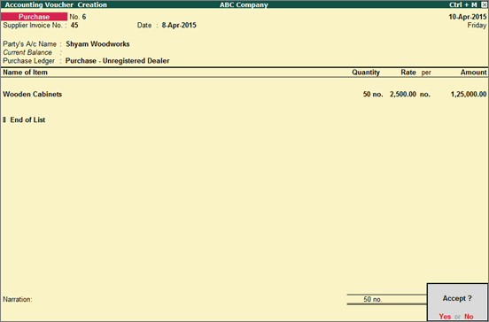 4.    Select the supplier ledger in field Party’s A/c Name.
