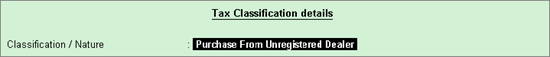 6.    Select Purchase From Unregistered Dealer as Classification / Nature in the VAT Classifications Details screen.
