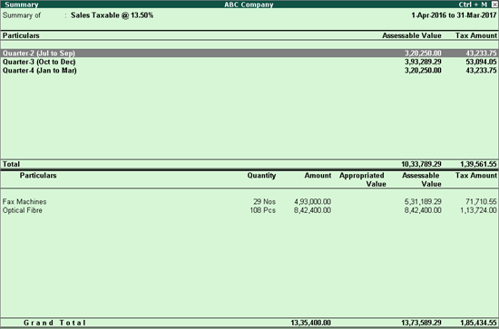 Similarly, quarter-wise sales value for other VAT rate can be displayed by drilling down from respective VAT rate row in the report.