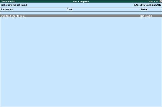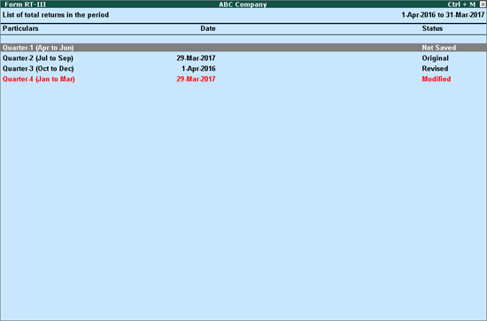 o     Not saved: Displays when return for the period is not saved.