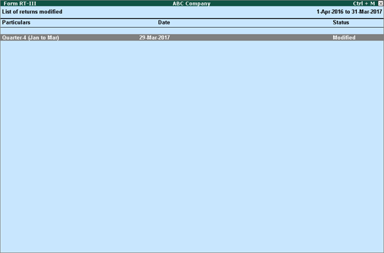 The List of returns modified appears as shown:
