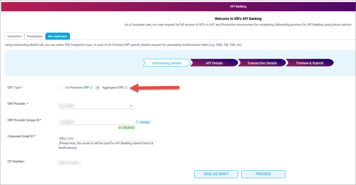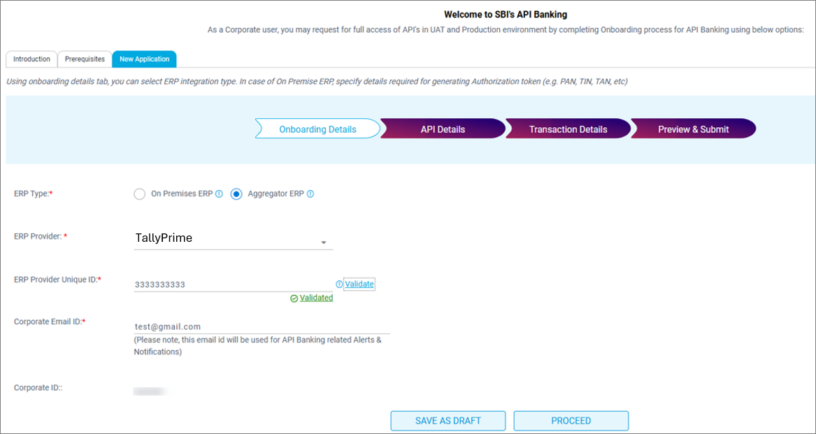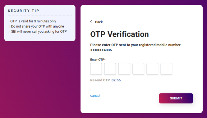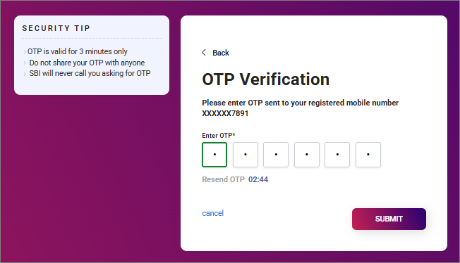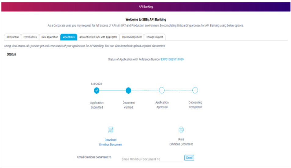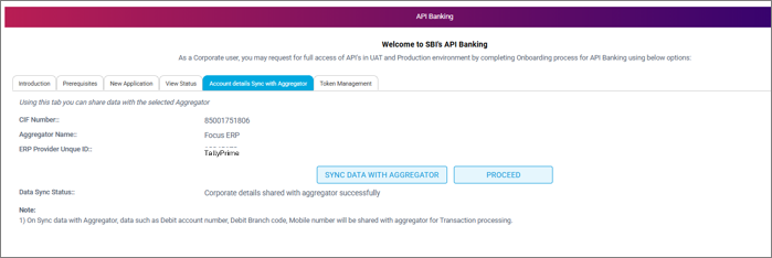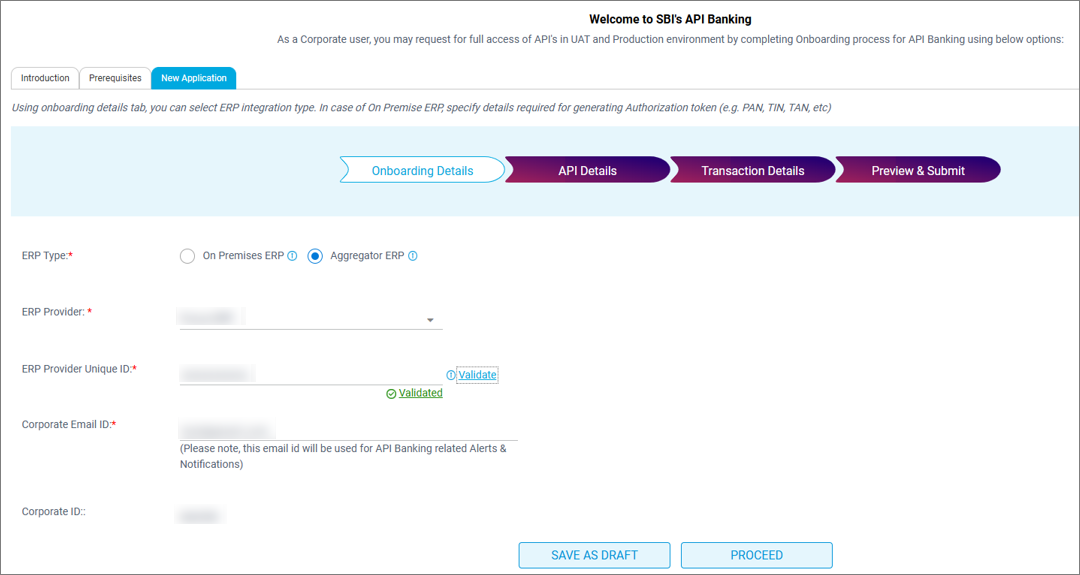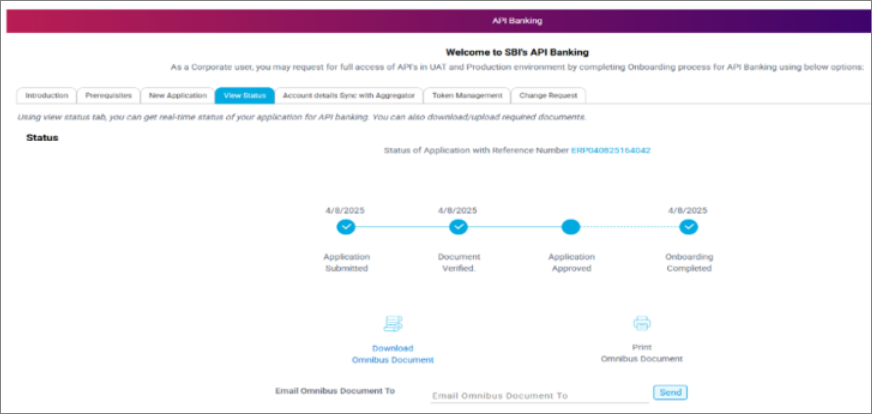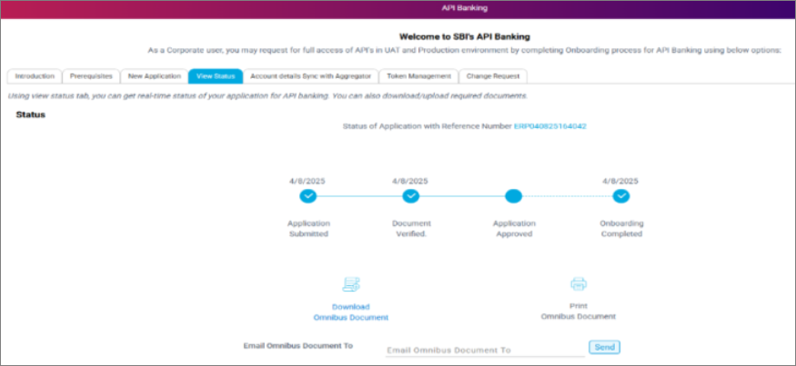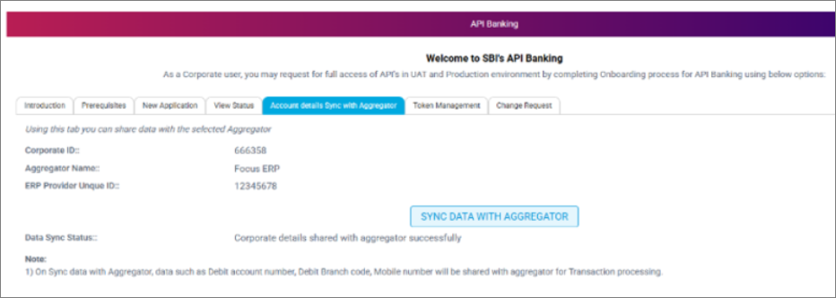 Connection with SBI account by completing the onboarding steps on the bank portal