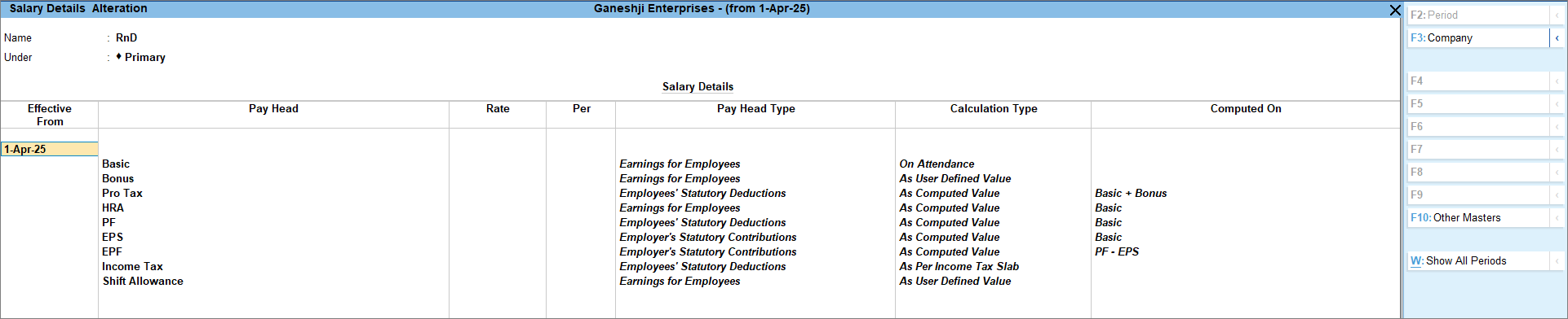 Define Salary Structure for Employees and Employee Groups in TallyPrime