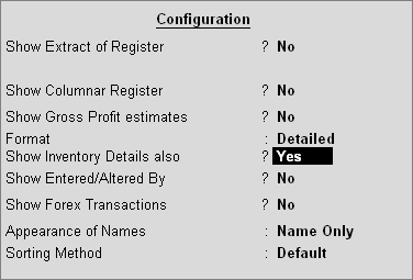 4. Set Show Inventory Details also to Yes and view the List of All POS Vouchers with Inventory details.