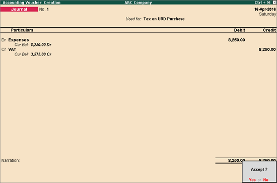 You can account for tax on purchases from unregistered dealers by creating a journal voucher.