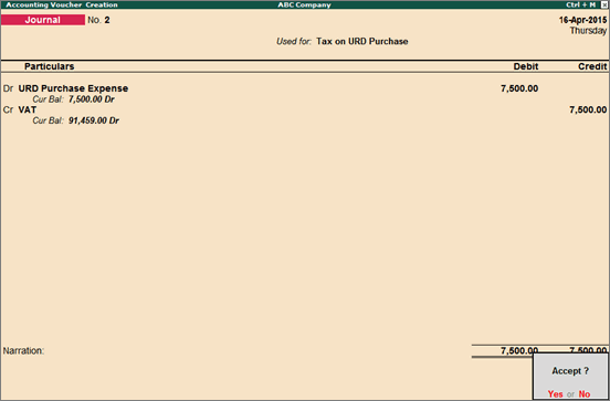 You can account for tax on purchases from unregistered dealers by creating a journal voucher.