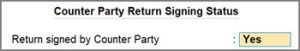 - Press Ctrl+I (More Details) > Counter Party Return Signing Status.
