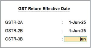 Invoice 15-Jun-2025 GSTR-2A/GSTR-2B: 1 Invoice with return effective date as 15-Jun-2025 |