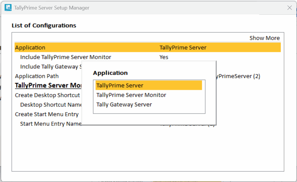 - Select TallyPrime Server Monitor as the Application, and press Ctrl+A to accept.