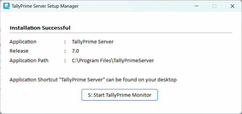 Now, TallyPrime Server Monitor is successfully installed on your computer, allowing you to efficiently track and manage server activities as per your administrative requirements.