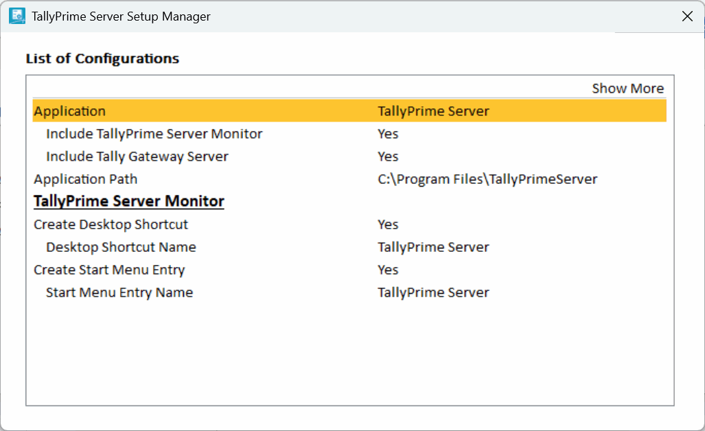 - Double-click the setup.exe file to open the TallyPrime Server Setup Manager.
