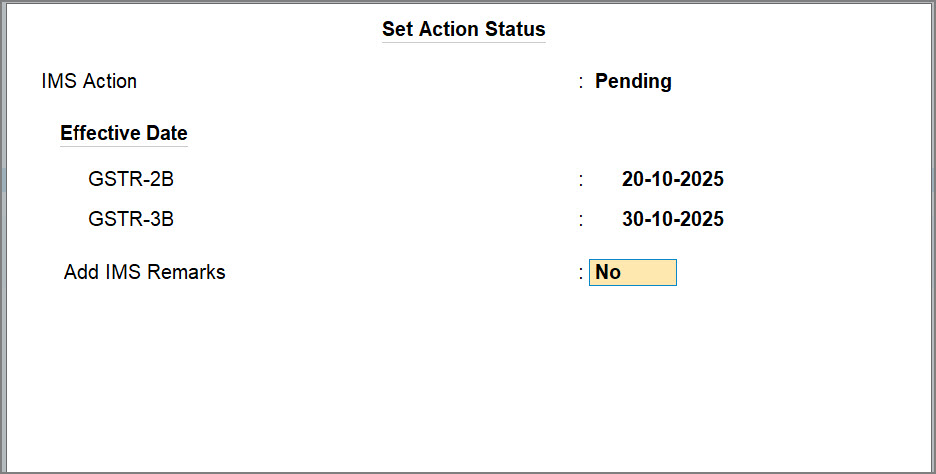 While setting the action status as Pending, you can enter the Effective date for GSTR-2B & GSTR-3B.