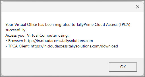 Your Virtual Office is now being migrated from TallyPrime powered by AWS (TPonAWS) to TallyPrime Cloud Access (TPCA) hosted on Oracle Cloud Infrastructure (OCI). This move gives you a faster, more secure, and more capable cloud platform — while keeping your existing setup, data, and user configurations intact.
