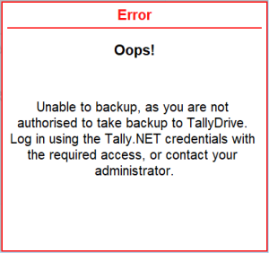 Unable to backup, as you are not authorised to take backup to TallyDrive.