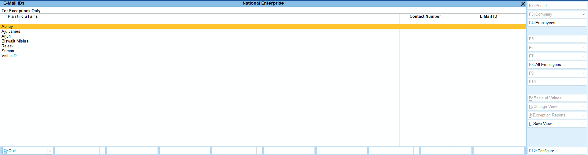 View Employee E-Mail IDs Report in TallyPrime (Payroll)