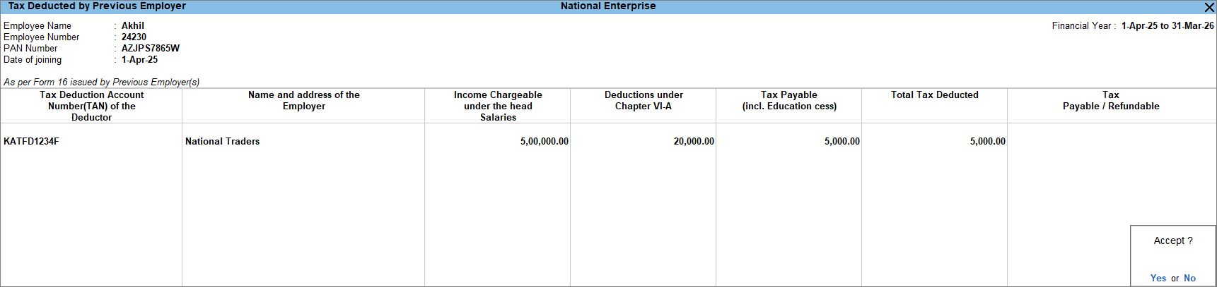 View Previous Employer Details in TallyPrime