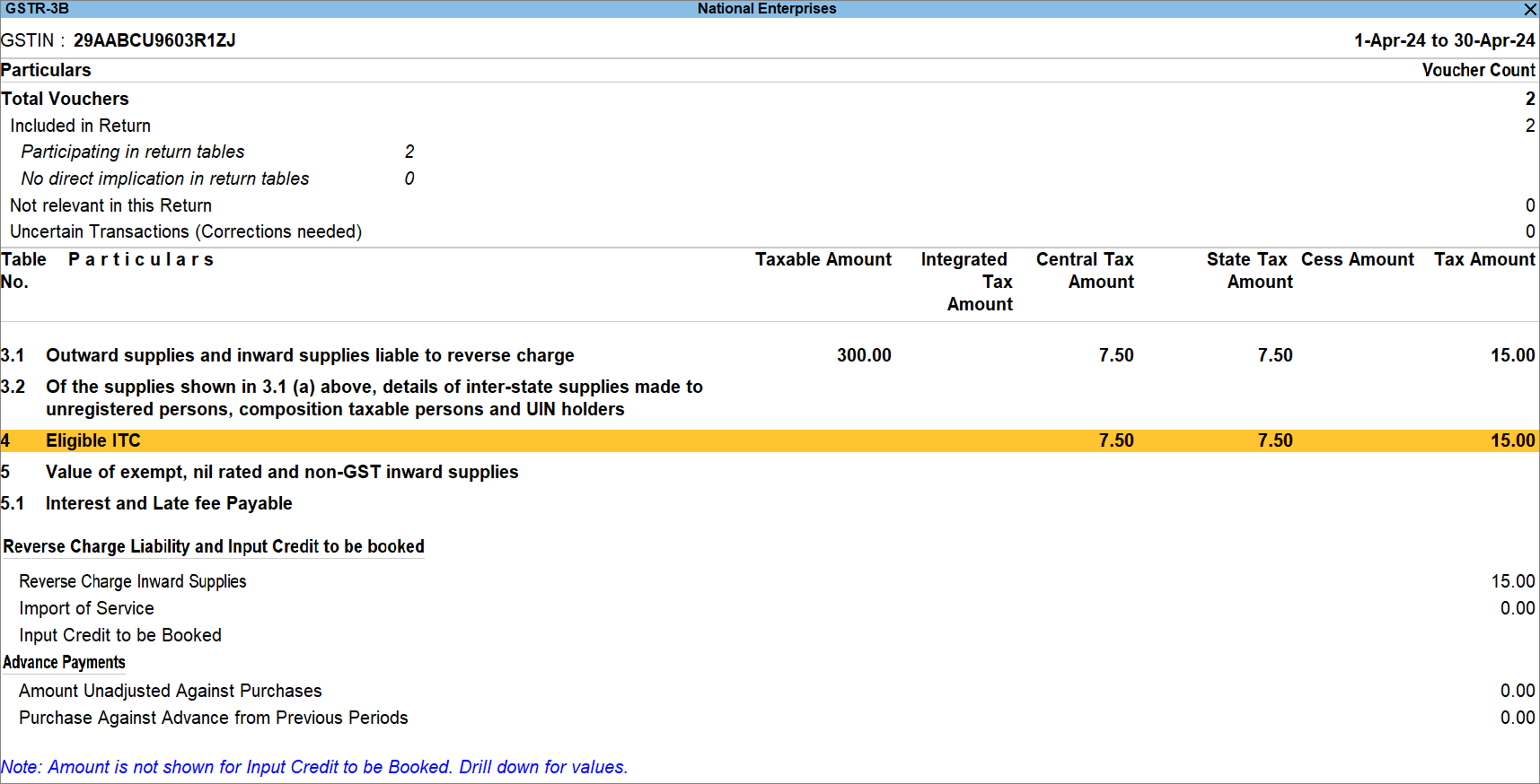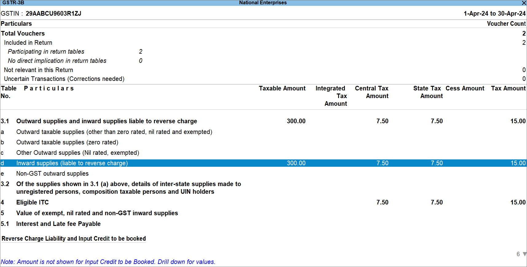 - Press Enter on Outward supplies and Inward supplies liable to reverse charge.