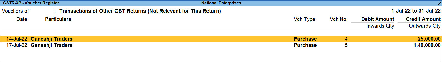 As a result, the sample purchase vouchers against which the tax liability was raised to claimed ITC will move to the Not Relevant for This Return section of GSTR-3B.