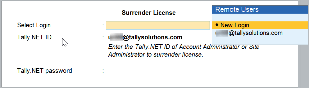 Enter the E-mail ID/Tally.NET ID.