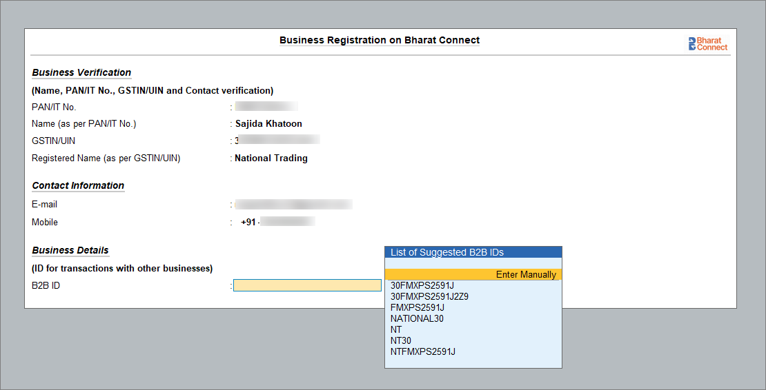Register with Bharat Connect Using GSTIN/UIN