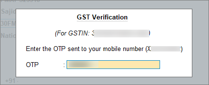 An OTP will be sent to the mobile number registered with your GSTN verification.