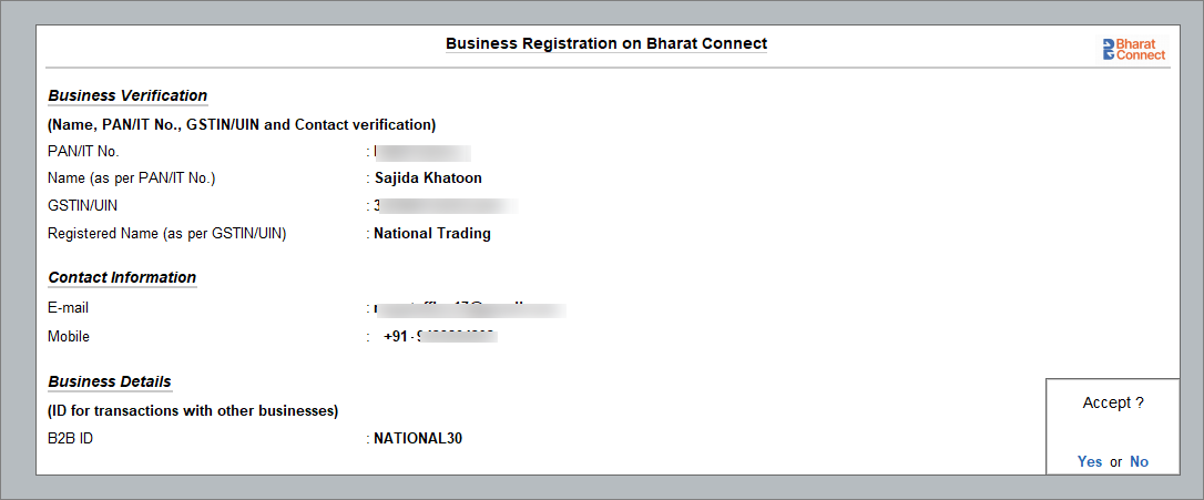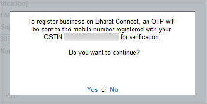 If you are a new Tally.NET user who requires access for a particular GSTIN registered with Bharat Connect Platform, you have to complete the OTP verification process.