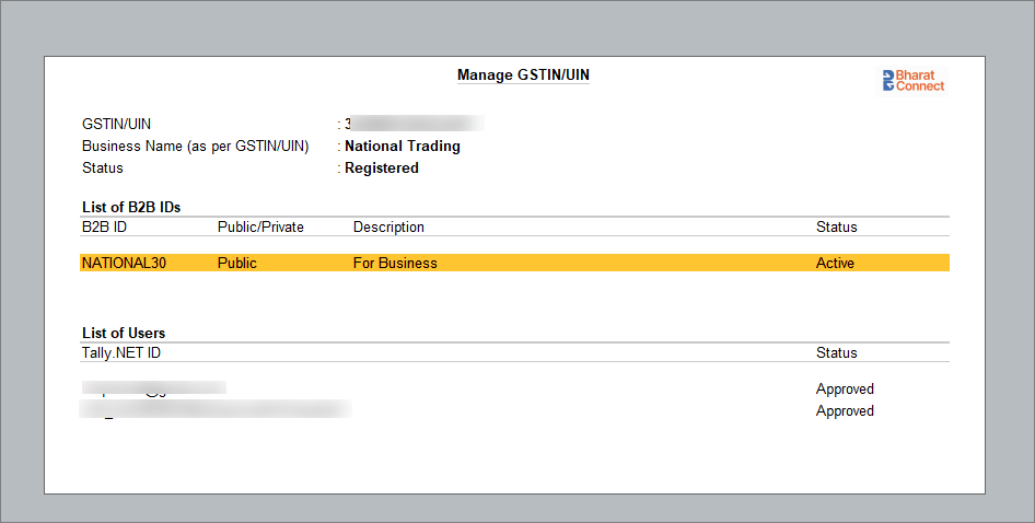 You can register one or more GSTINs with the Bharat Connect platform to seamlessly transact with other businesses. Any time, you can deactivate your GSTIN if you don’t want to continue using Bharat Connect. Deactivated GSTINs can be activated if required.