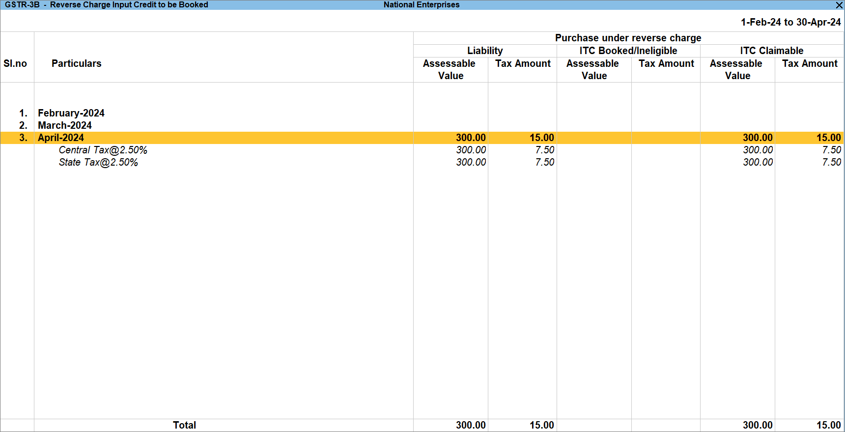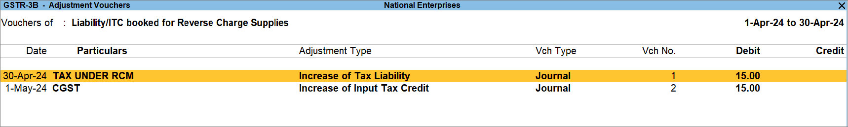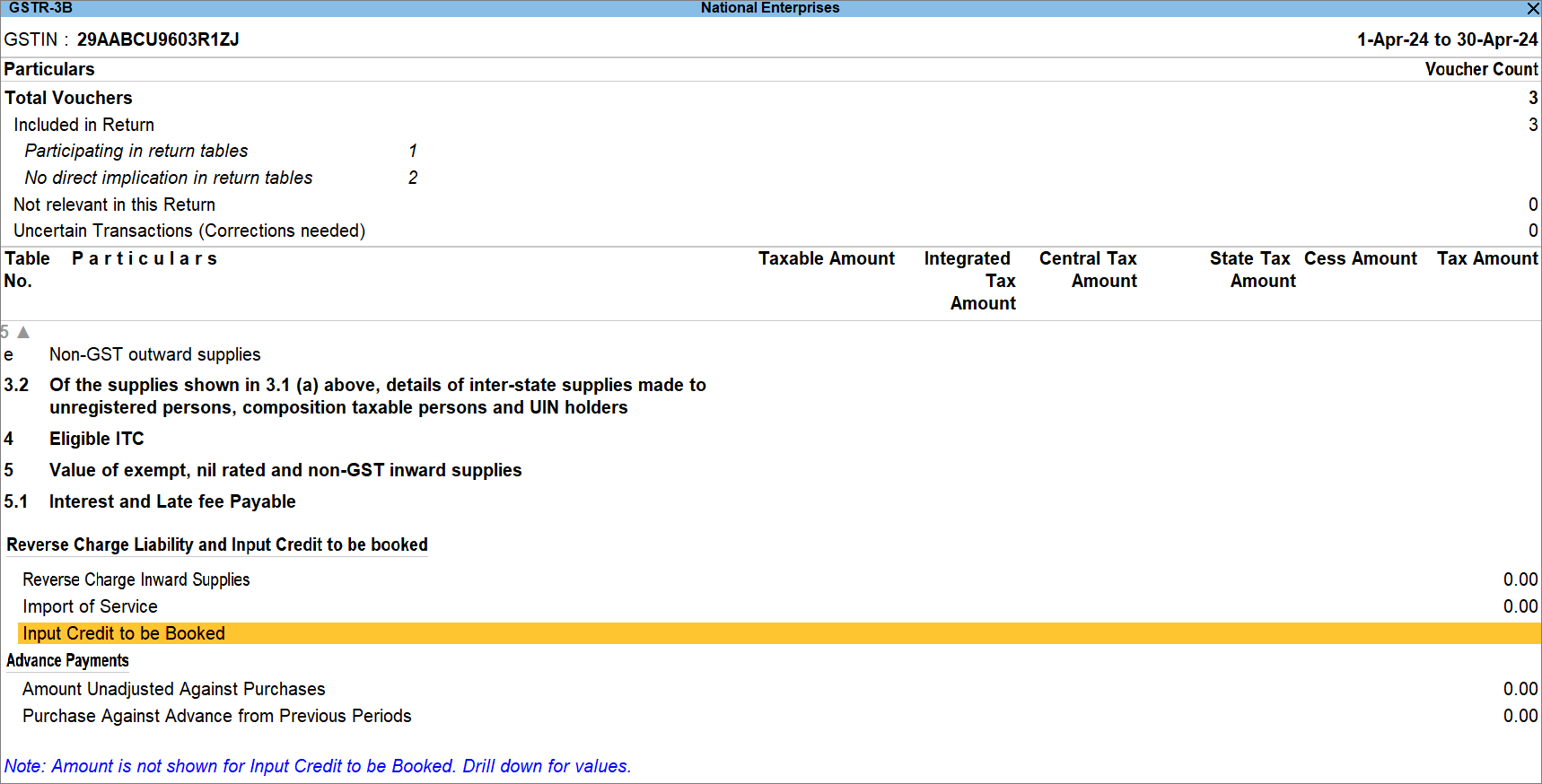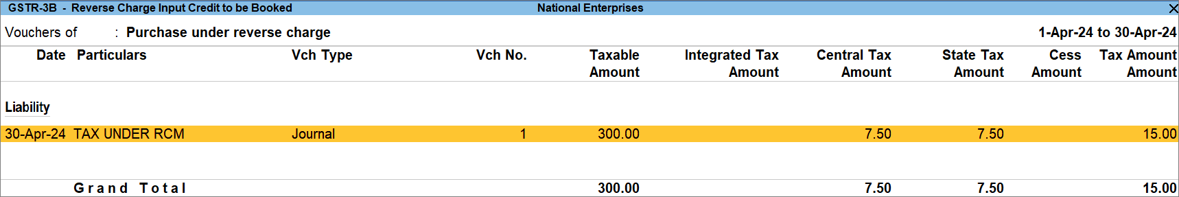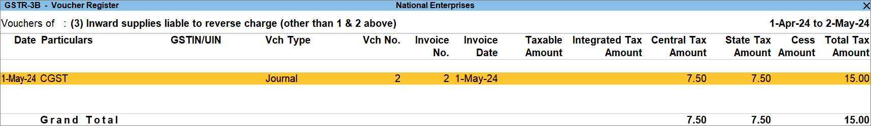 View GST Reverse Charge Supplies in GSTR-3B in TallyPrime