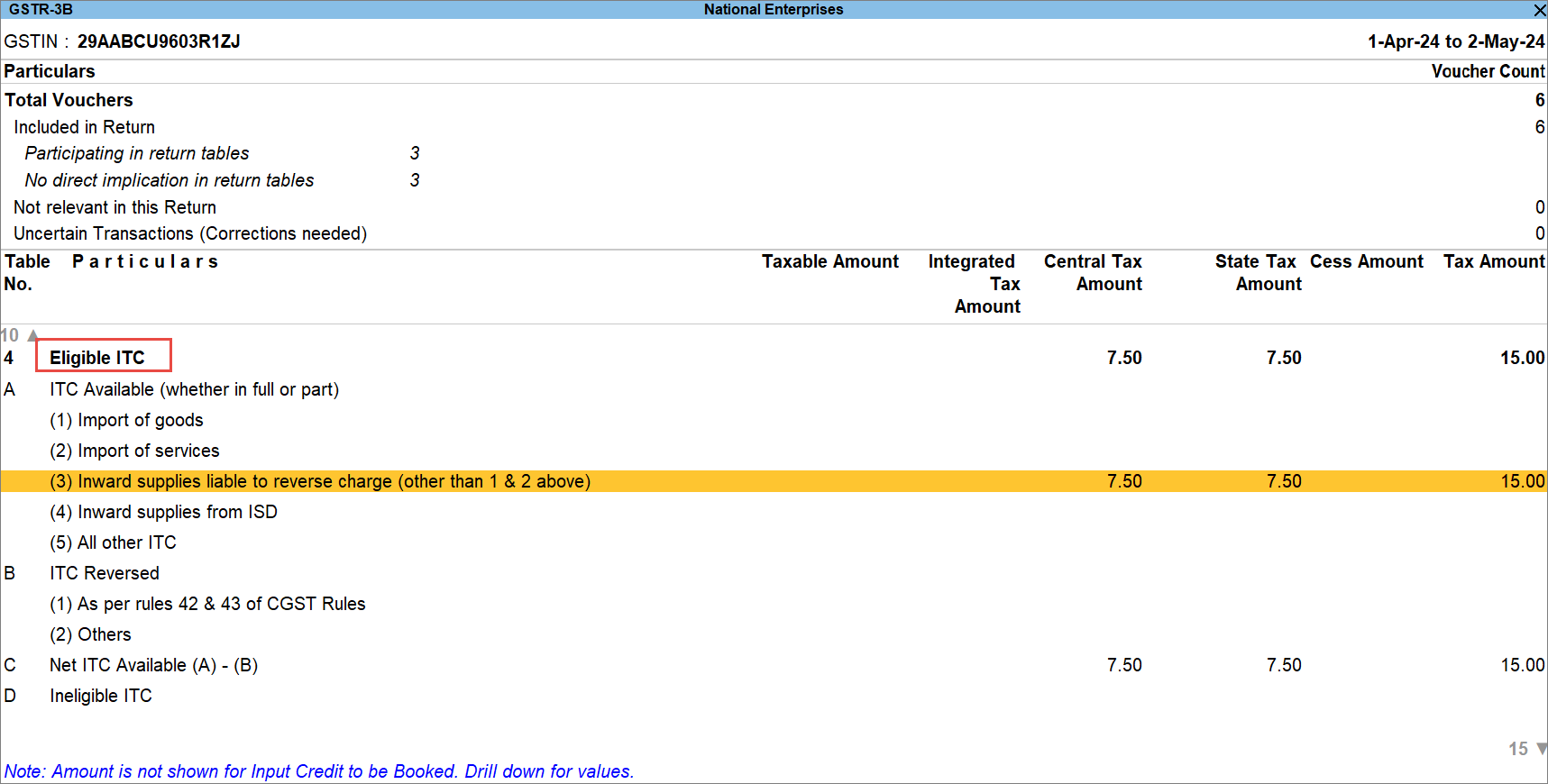 View Total Eligible Input Tax Credit (ITC)